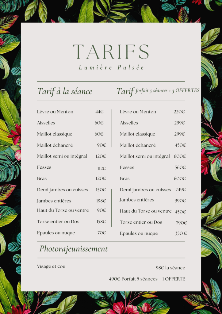 La photodépilation nécessite un premier rendez-vous. Il s’agit d’un bilan personnalisé afin de vous expliquer le fonctionnement de la lumière pulsée ,vous indiquer les contre-indications, les recommandations, établir le devis et enfin réaliser un flash test.